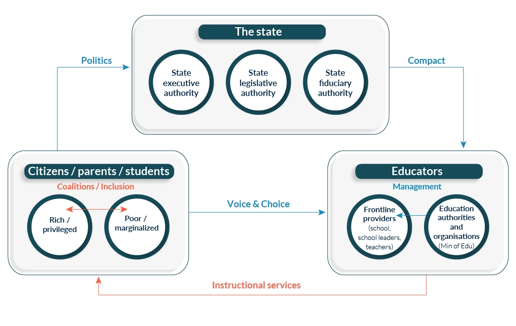 The Diagnostic is based on the RISE Systems Framework, which maps the relationships between actors in an education system and explores the effects of these relationships on systemic outcomes.