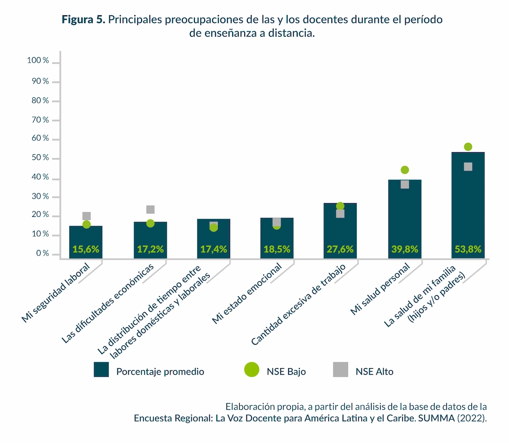 Impactos negativos de la pandemia sobre el bienestar docente y estudiantil que relevan la dimensión socioemocional de la educación.
