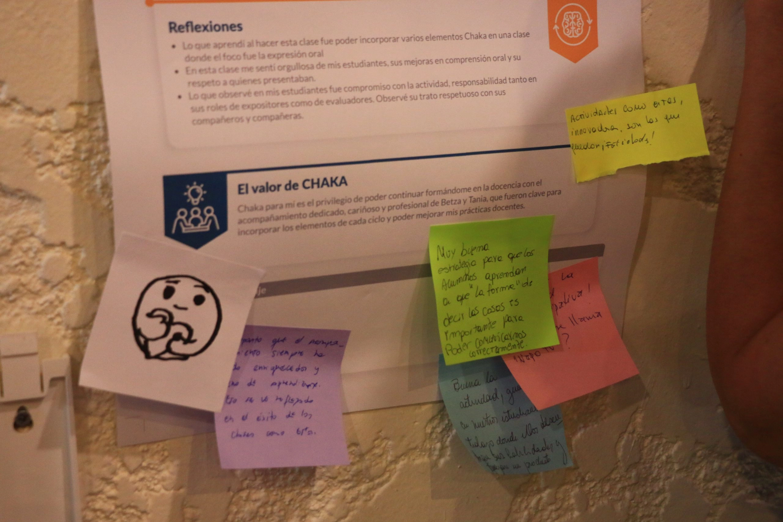Durante la actividad, que tuvo espacios de trabajo grupal, los asistentes reflexionaron sobre los logros alcanzados en 2022 y se repasaron, entre otras actividades de este año, los cinco ciclos de formación profesional que se llevaron a cabo y que abordaron los temas de metacognición, diálogo y colaboración; retroalimentación formativa, Aula Chaka y aprendizaje socioemocional.