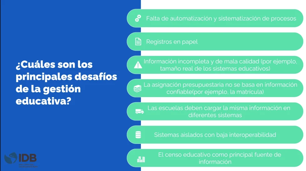 Para dar comienzo, Elena Arias Ortiz, Especialista Senior de Educación del Banco Interamericano de Desarrollo (BID), presentó el estudio “Transformación Digital de la Gestión Educativa”, el cual abordó los desafíos actuales que enfrenta la educación en América Latina y el Caribe. Como respuesta frente a esta situación, remarcó la importancia de enfocarse en dos áreas principales: la transformación pedagógica, con un enfoque en las habilidades del siglo XXI, y la mejora en la gestión y eficiencia del gasto, priorizando procesos eficaces y el uso de información digital integrada y actualizada.