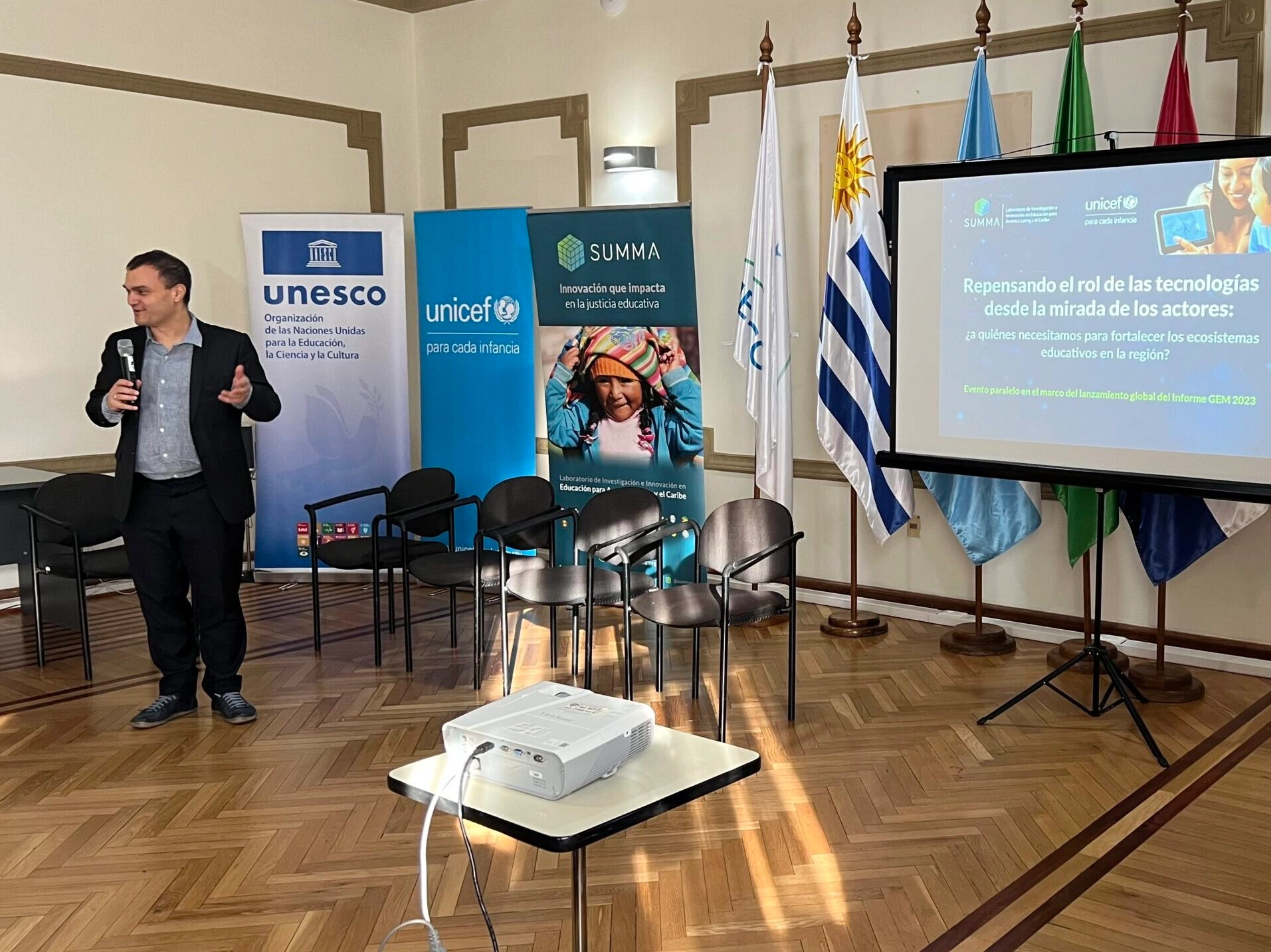 SUMMA y UNICEF América Latina y el Caribe llevaron a cabo el seminario “Repensando el rol de las tecnologías desde la mirada de los actores: ¿a quiénes necesitamos para fortalecer los ecosistemas educativos en la región?” en el marco del lanzamiento del Informe GEM 2023 sobre Tecnología en la Educación que tuvo lugar en Montevideo, Uruguay.