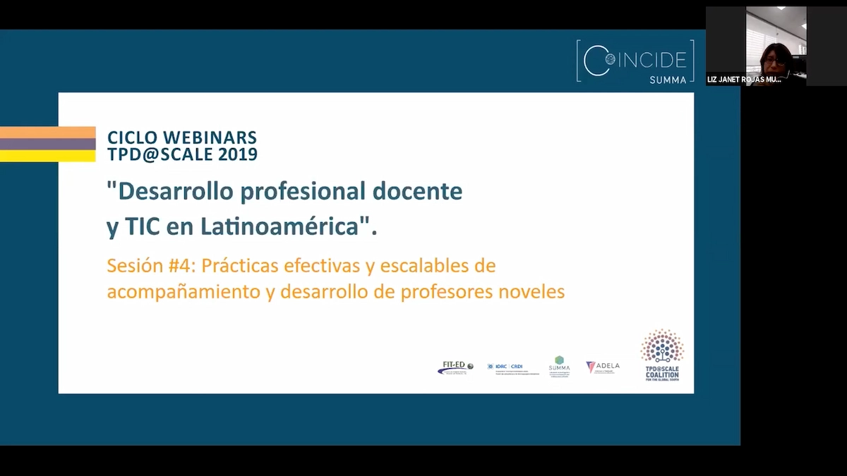 En estos encuentros organizados por SUMMA, investigadores y profesionales de toda América Latina dialogan en torno a ámbitos críticos de formación profesional docente (formación inicial o en ejercicio) mediante el uso de tecnologías digitales en la región. Este ciclo es uno de los componentes principales de la red de colaboración internacional TPD@Scale Coalition for the Global South (Coalición para el desarrollo profesional docente a escala para el Sur Global), liderada por Fit-ed, IDRC, SUMMA y ADELA.