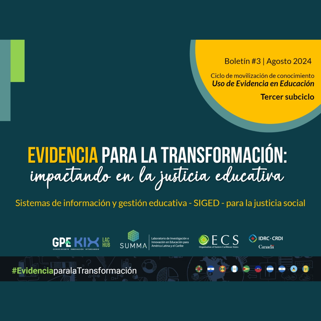 Tercer boletín temático Uso de Evidencia en Educación, publicación elaborada como resultado del Ciclo de movilización de conocimiento y comunidad de práctica KIX LAC «Uso de evidencia en educación», en su tercer subciclo Sistemas de información y gestión educativa – SIGED – para la justicia social.