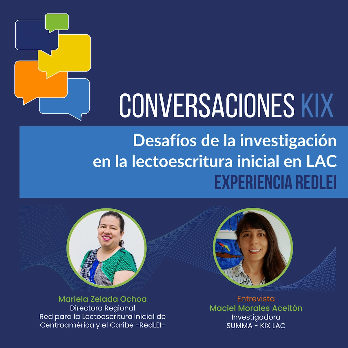 La decimoquinta edición de las Conversaciones KIX contó con la presencia de Mariela Zelada Ocha, directora regional de la Red para la lectoescritura inicial para Centroamérica y el Caribe – RedLEI -, quien fue entrevistada por la Dra. Maciel Morales Aceitón, investigadora de KIX LAC.